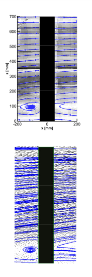 Figure 1 – Comparison of velocity vector fields and streamlines (CFD vs. PIV)