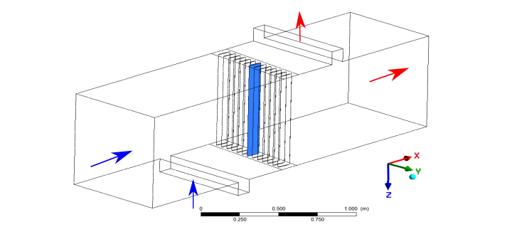 After validating the flow filed around blade cascade with PIV measurements, in the next step aerodynamic force one the cascade blades evaluated in the CFD numerical model. At this stage only steady state CFD simulations are carried out to evaluate the forces on the blades along with the flow field. In Figure 2 the aerodynamic force (y-direction) on the mid blade is presented. The y-component of force is representative of the lift-force on the blades. In Figure 2, the aerodynamic forces one suction side (SS) and pressure side (PS) for 5m/s inlet velocity (V) and three different bypass velocity 0m/s, 5m/s and 10m/s respectively.